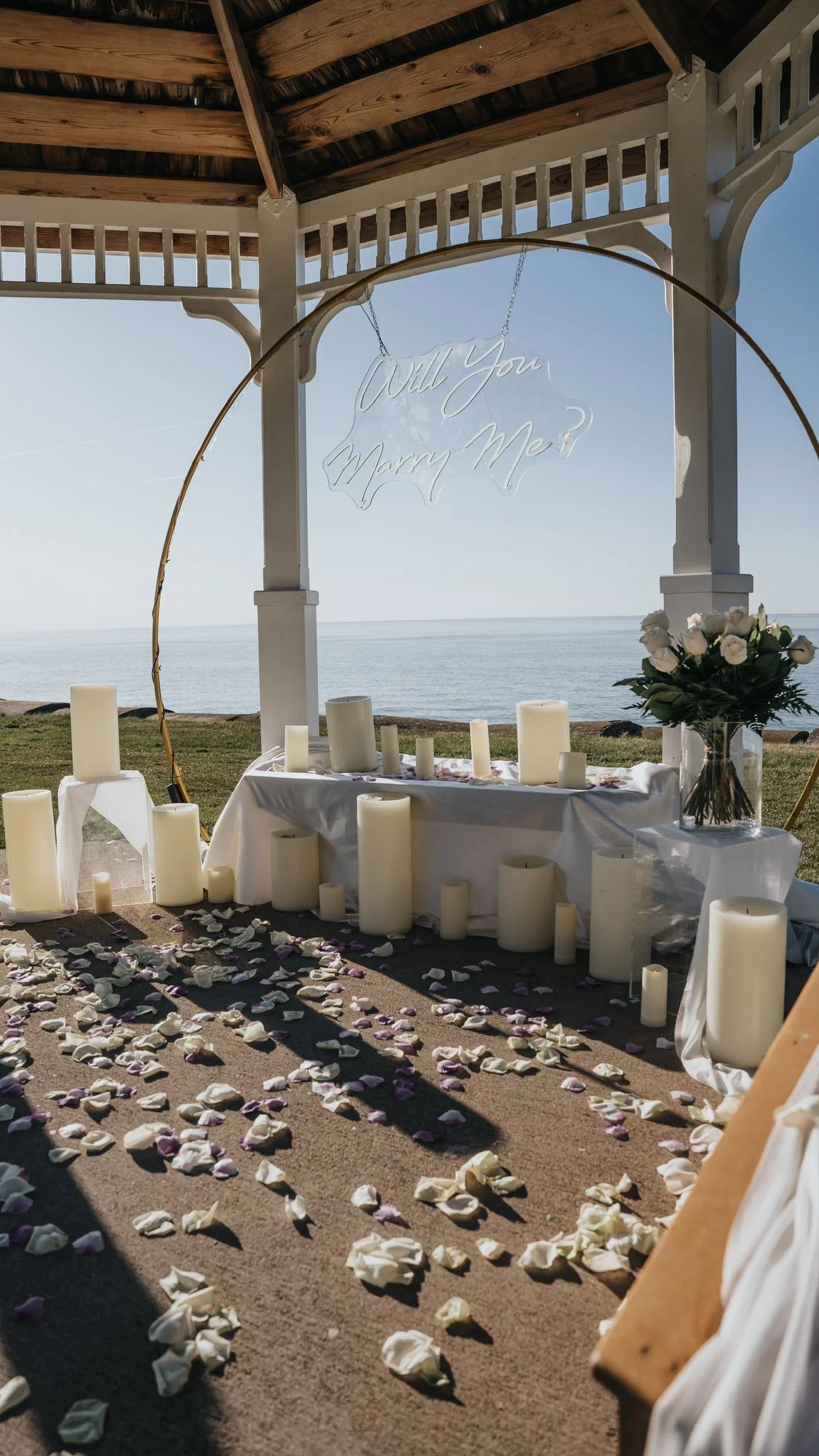 Want to give them a gift besides the ring? All of our packages include champagne and a bouquet but if you have something special in mind, you can ship it to us and we will have it set up and ready to be included in your proposal!